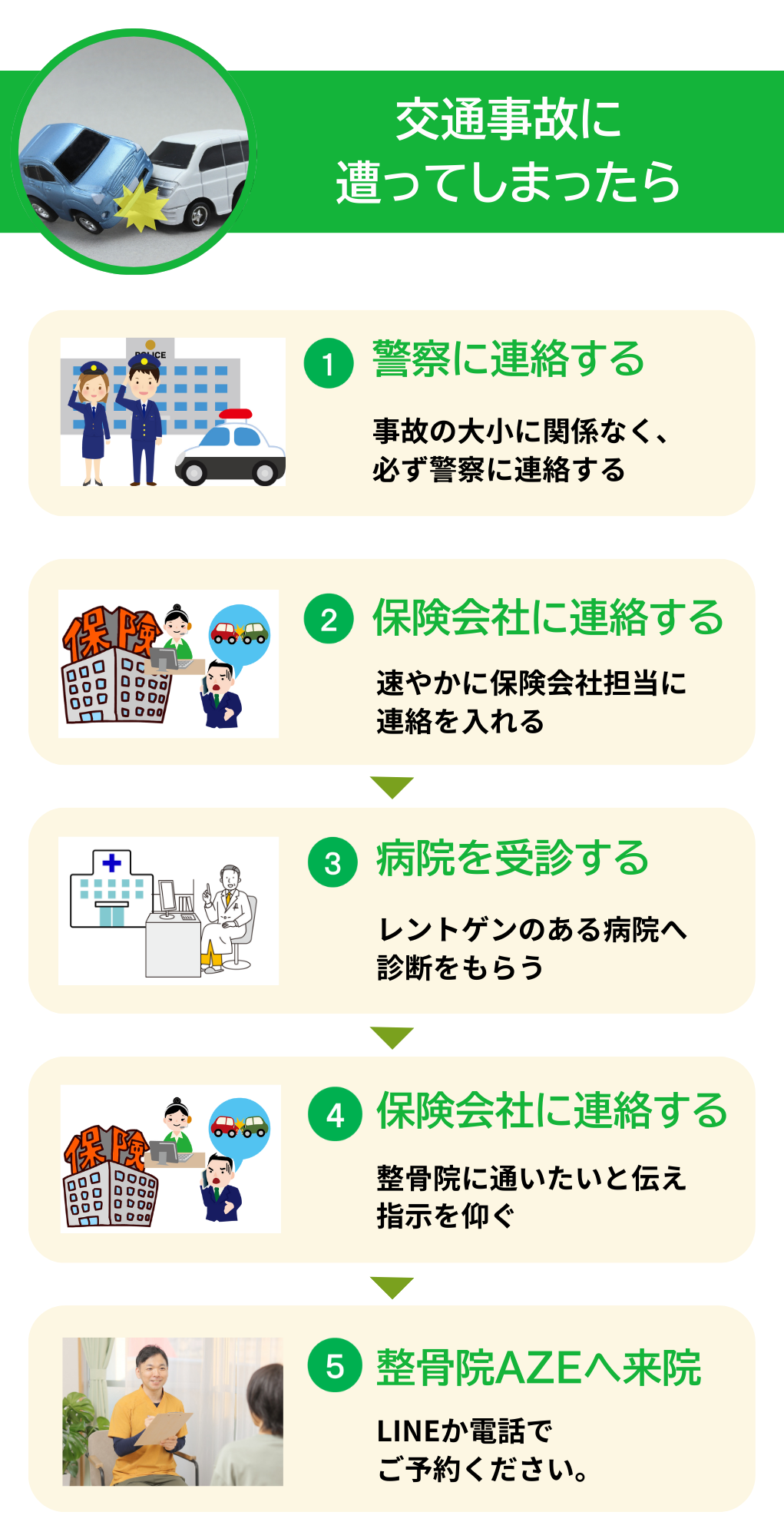 交通事故後の不調・むち打ちケアなら 整骨院AZE へ